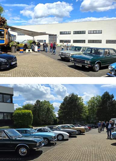 Oldtimer- und Youngtimer-Fans zusammen, um sich auszutauschen, zu fachsimpeln und gemeinsam ihre Begeisterung für